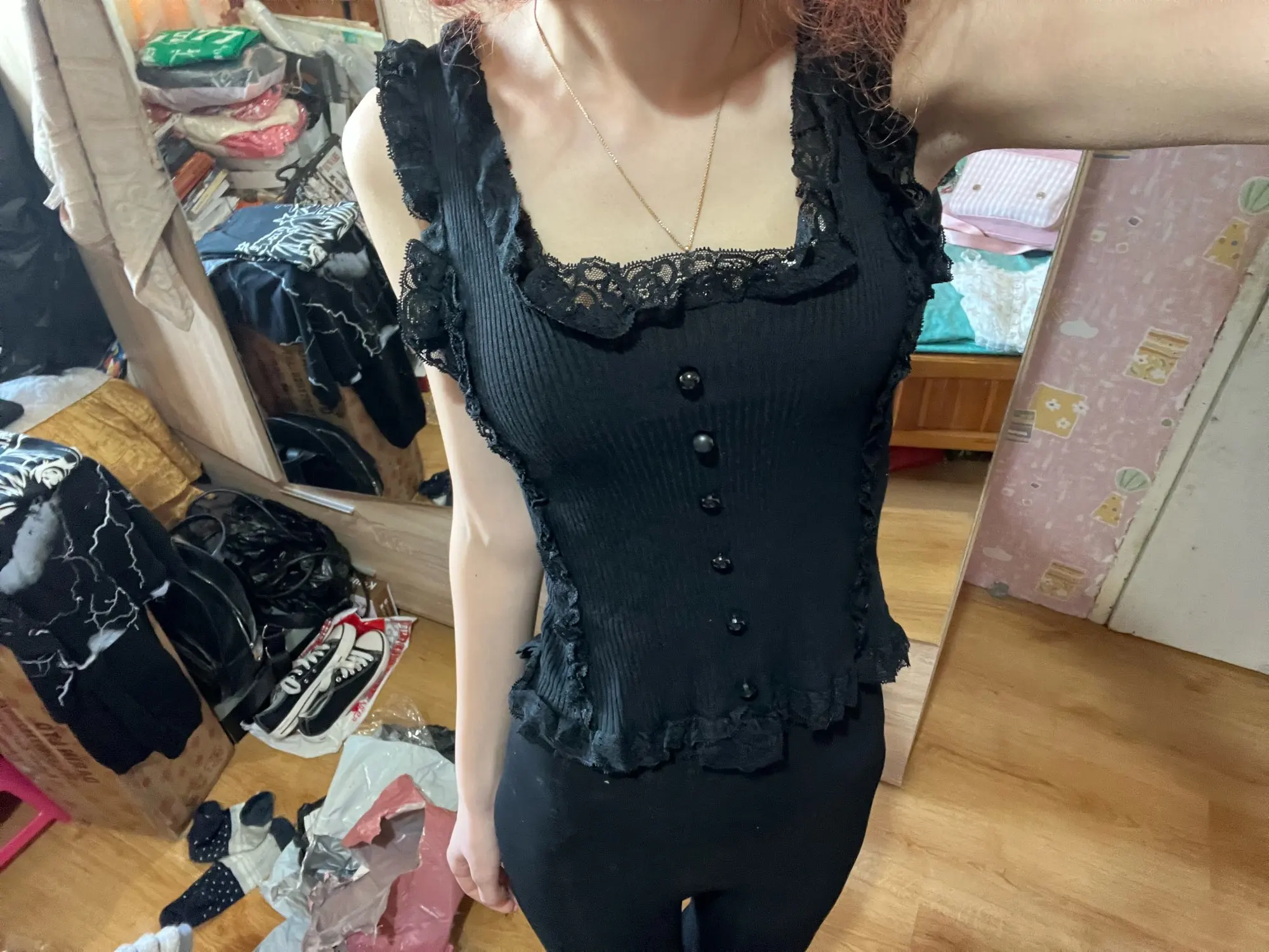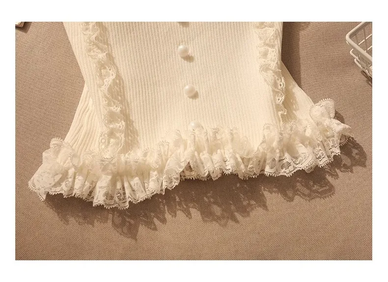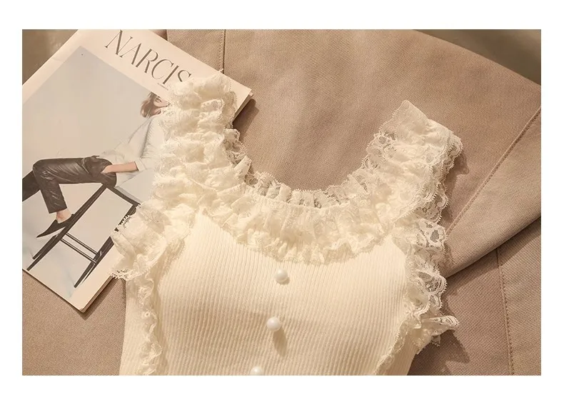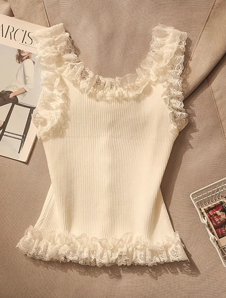 Korean Lace Patchwork Crop Top Women U-Neck Knitted Stretch Tank Top 2025 Summer Female White Lace Stretch Cami